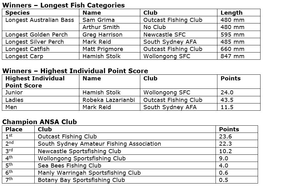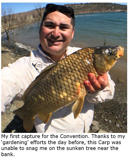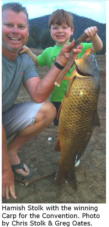 Fishing ended at 11 am and following the raffles, the presentation got underway. Needless to say, none of my fish were winners. Hamish Stolk claimed the trophies for Longest Carp, and Highest Point Scoring Junior Angler. I lost count of the number of trophies claimed by anglers from Outcasts Fishing Club, so it was no surprise that they also claimed the Trophy for Champion Club. They also won Champion Club at the Lake Lyell Convention, and I invited them to attempt a hat trick at Burrinjuck.