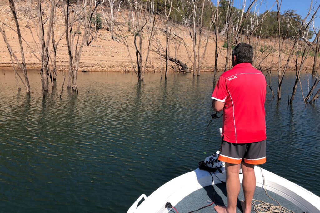 We launched Dave’s boat at the Eastern Foreshore and motored about two thirds up the dam. Dave regularly chases Bass in the Clarence River and nearby dams, so he was pretty confident with picking out some good spots.